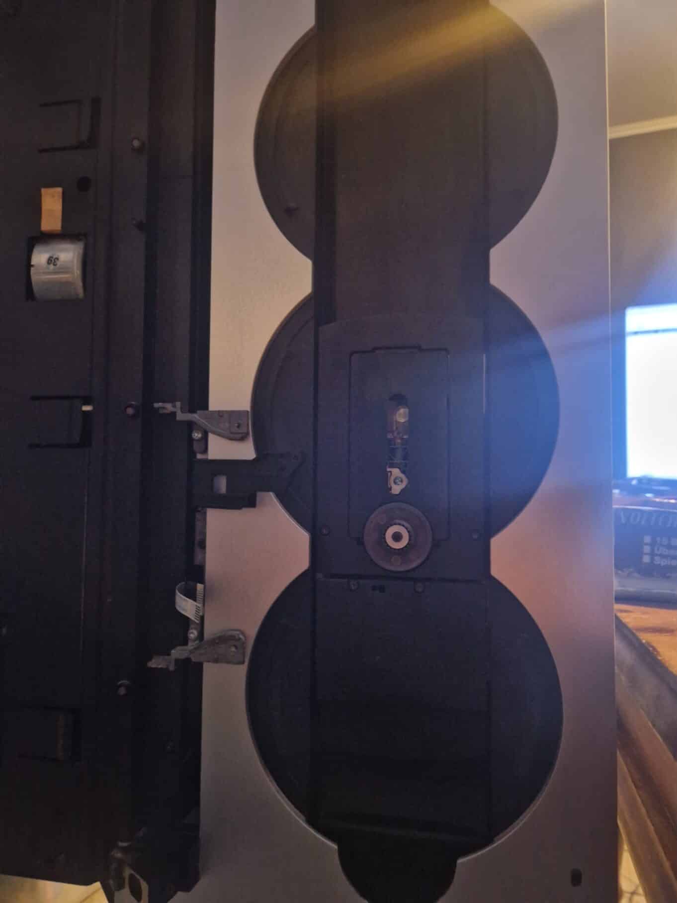 Hey, thanks for having me join your community! I just aquired a Beosound 9000 and it have an issue I was wondering if anyone could help? Sothe system stands on a stand, I spent all day get it to go in CD slot 1. I ran test mode first, lots of errors, "clear all" no errors. Then I figured it was in CD slot 6 so I had to power of after pressing to change CD slot, this lets it freeslide, so I pushed it up to slot 1 and powered back up. It stays here and plays the CD.   Now the issue, when I try to change it to slot 2 it drops half the way, powers down and whithout pressing power it drops another half by itself, it goes like this all the way to the bottom still thinking it is in CD slot 1.   So basicly as it sits now I can only use CD slot 1. There are 2 plastic knobs aluminium side right/left? The left one is broken off, would this cause issues? Should be some laser to stop the slider if a hand comes in, well this does not work!   I started to dissasemble glassand top of laser, but I a not sure what to look for or what to do so I thought better to ask.   Sorry for a long poste, really hope to get some help-_-
